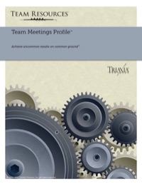 Achieve uncommon results on common ground.™Meetings are the playing field for high performance teams. Effective or not, meetings cost money and consume valuable resources. The real issue is not the cost of meetings, but rather the cost of poor meetings. This diagnostic enables your team to graphically identify strengths and weaknesses across each of the factors that drive successful meetings, and map out key next steps for improvement.